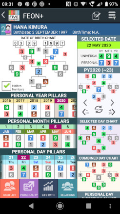Let’s check on the late Hana Kimura’s charts. I plotted her chart and check the Selected Day and Combined Day charts of the day she passed away. There were minimal clues suggesting signs of self-destructive tendencies or potential mental depression-like symptoms. I then checked the previous day, i.e., 22nd May 2020. Sadly, the signs were present on the chart. The 9-4-4-8-4-3 patterns on the Selected Day Chart are manifesting the strong Wood elements. The Combined Day Chart shows the criss-cross 3-6-9 patterns, which could be about confusing mindsets (criss-cross, left-right effects) and hasty action (3) to end her life (6) to solve the problem as completion or closure (9) to her trouble. There are multiple 9s, which could have further influenced on her mental state. In short, we could also interpret the 3-6-9 pattern as [Fast – Death – Closure]. Her weak Root number 2 is also suggesting sensitive feelings and insecurity, and that, sadly, could have influenced her suicidal action.