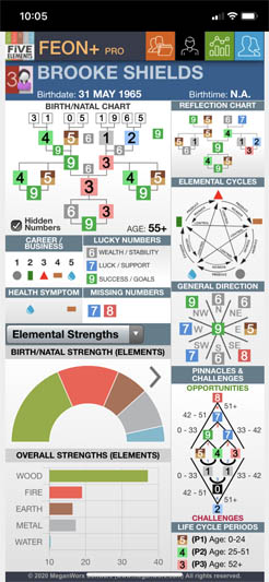 Do not be excessively worried or anxious, even if you’ve similar charts, or have the same birth date as Brooke Shields. As said, health is paramount, making a conscious effort to take good care of your wellness is important. Use the Elements of Numbers (EON) method, and learn to identify and recognise the potential ill-effects that could create unhealthy havoc in your life. Get my EON book, “Elements Of Numbers: Fast and Easy Character Profiling” if you haven’t bought a copy, and check out the Five Elements and Health topics for insights into the issues that could affect you when an element is strong or weak.